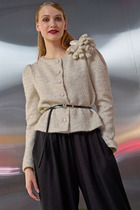 Жакет жаккардовой вязки выполнен из нежной пряжи на основе вискозы с добавлением кашемира. Модель с круглым вырезом и золотистой фурнитурой выглядит дорого и роскошно, приятно ощущается на теле и поддерживает комфортный микроклимат. Совет стилиста: сочетайте с однотонными брюками, юбкой, платьем или джинсами. Можно использовать в комплекте total-look с D39.362 и с платьем D32.110