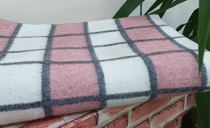 Совместные покупки Омск Товары для дома и дачи Подушки, одеяла — ВЛАДЛЕН Одеяло полушерстяное (50% Шерсть) Клетка Бело-Серо-Розовая