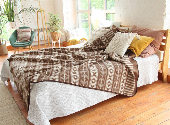 Совместные покупки Омск Товары для дома и дачи Подушки, одеяла — ВЛАДЛЕН Одеяло полушерстяное в канте (40% Шерсть) Орнамент коричневый 4-9