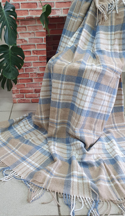 Совместные покупки Омск Товары для дома и дачи Покрывала, пледы — ВЛАДЛЕН Плед полушерстяной 2сп (50% шерсть) - Бежево-голубой