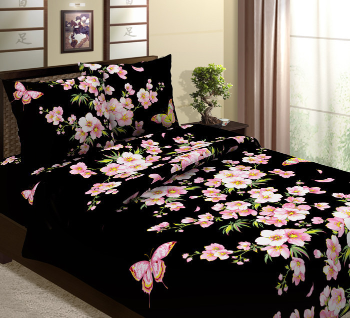 Совместные покупки Омск Товары для дома и дачи Постельное белье — ВЛАДЛЕН Постельное белье из бязи (150см) Сакура (чёрный)
