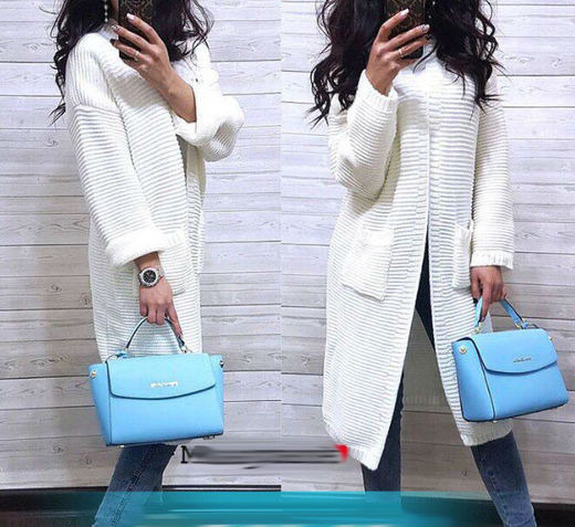 Совместные покупки Омск Женская одежда Кофты, кардиганы — Вязаный кардиган с карманами белого цвета оптом