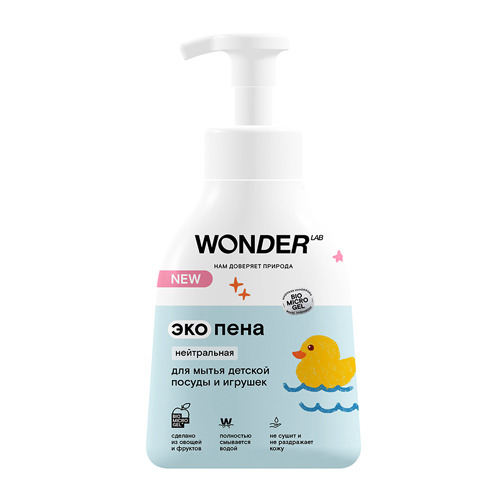 Инновационная и абсолютно безопасная для детей и природы экопена для мытья детской посуды и игрушек WONDER LAB нейтральная 450 мл облегчает мытьё детской посуды, игрушек и сосок. Пена одинаково хорошо работает как в горячей, так и в холодной воде, пригодится как на кухне, так и в ванной комнате.