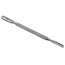 Шабер металлический двухсторонний. Применяется для всех процедур маникюра и педикюра, а также при подготовке натуральных ногтей перед наращиванием искусственных. С помощью шабера можно аккуратно и бережно отодвинуть отросшую кутикулу, очистить ногтевое плато от кожных наростов.