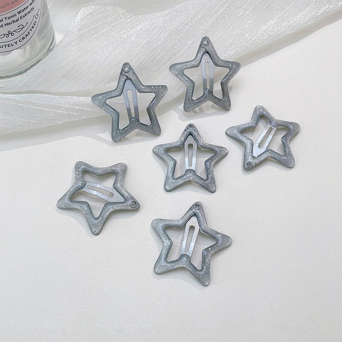 Заколки звездочки «клик-клак» с блестками 6 шт. Цвет: СЕРЫЙ