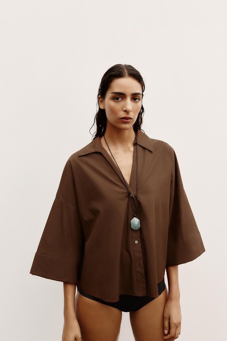 Совместные покупки Омск Женская одежда Блузки, рубашки — zara POPELINHEMD MIT WEITEN RMELN Braun | 2246/534/700