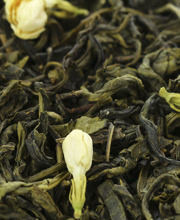 Жасминовый зеленый чай- известен и любим во всём Мире. Чай отличатся необыкновенно изысканным и утончённым вкусом и нежным цветочным ароматом.Купаж на основе традиционного зеленого чая Сенча, с добавлением цветков жасмина. Не содержит ароматизаторов и ГМО.Чтобы максимально правильно заварить зелёный жасминовый чай лучше предварительно согреть заварной чайник - ополоснуть кипятком. Но заливать сам чай кипятком не следует, так как вы рискуете потерять аромат жасмина. Вода должна быть 80-85 градусов по Цельсию и не водопроводная (пусть даже фильтрованная), а питьевая бутылочная. Всё это тоже сказывается на яркости и насыщенности жасминового аромата.