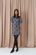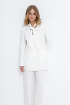 Удлиненный жакет прямого силуэта с накладными карманами.