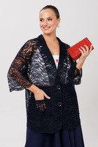 Бренд белорусской женской одежды больших размеров Anastasia представляет элегантный кружевной жакет. Жакет прямого силуэта со спущенным плечом. Рукав 3/4 длины. Застежка на пели и пуговицы, воротник пиджачного типа. По полочке идут накладные карманы, низ фигурный. Стильный жакет оверсайз невероятно удобный и практичный. Отличный вариант в офис, в школу, на работу, на каждый день. Жакет выгодно подчеркнет достоинства фигуры и скроет недостатки, подходит для девушек любых размеров одежды. Комфортный удобный, хорошая посадка и современный дизайн. Длина по спинке: (52-60) - 77 см, (62-68) - 79 см. Длина рукава: (52-68) - 30 см