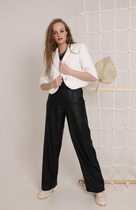 Данная модель снята с брюками Anelli-Laurel  1156 (46-54) брюки экокожа черный. И топом Anelli-Laurel   767 (44-54) топ без бретелей черный.