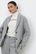 Двубортный жакет на подкладке, прямого силуэта. Обработаны прорезные карманы по переду. Рукава втачные одношовные, обработаны шлицей