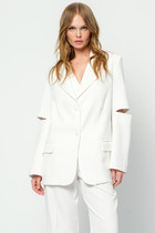 Двубортный жакет на подкладке, прямого силуэта.. Жакет выполнен из плотной пальтовой ткани. Обработаны прорезные карманы по переду. Рукава втачные одношовные, обработаны шлицей