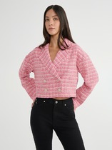Жакет однобортный, на подкладке, выполнен из эко-кожи. Обработан молнией разъёмной молнией по центру переда, закрывающейся планкой с пуговицами. Воротник тложнй, рубашечного типа. Рукава втачные одношвные, прямые. По передним половинкам обрабтаны накладные карманы с клапаном.