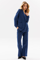 Жакет без подкладки, швы обработаны кантом в цвет изделия. Рукав втачной, прямой, одношовный. Воротник шаль. Застежка на притчной пояс, дополнен съёмной пряжкой золотистого цвета