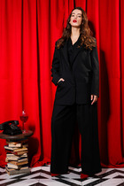 Жакет женский удлиненный, из текстильной ткани, на подкладке, полуприлегающего силуэта с центральной бортовой застежкой на пуговицы до линии перегиба лацкана. Спереди рельефные швы от плечевого шва, отрезной бочок и карман с клапаном. Спинка с рельефами от плечевого шва. Рукав втачной, двухшовный, по низу рукава обработана шлица на петли-пуговицы. Воротник пиджачного типа. Длина по спинке 66 см, длина рукава 62 см. К жакету рекомендуем брюки 596-арт. 2 79 22 и блузу 479.