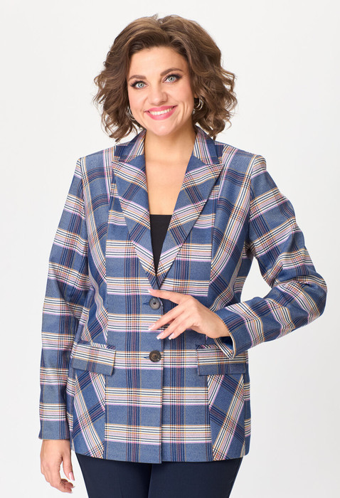 Жакет БелЭльСтиль 412 бело-синяя клетка