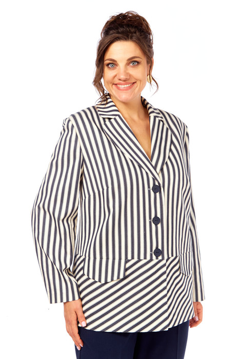 Жакет Элль стиль 2393ж молоко темно-син полоска