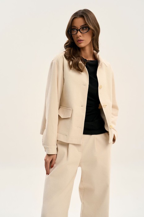 "Современный  жакет из хлопкового вельвета от GO составит беспроигрышную комбинацию с вашими платьями, юбками и брюками.