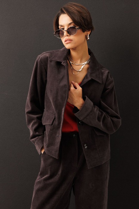 Современный жакет из хлопкового вельвета от GO составит беспроигрышную комбинацию с вашими платьями, юбками и брюками.