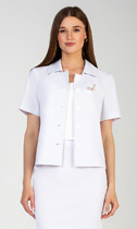 Жакет оформлен тремя декоративными пуговицами, которые подчеркивают лаконичный дизайн, и дополнен накладными карманами — практичный элемент, сохраняющий аккуратный вид даже при активном использовании. Отсутствие подкладки делает эту модель универсальной для теплых дней и переходных сезонов, а свободный крой обеспечивает свободу движений.