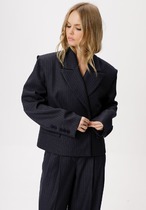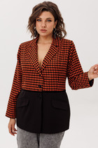 Жакет женский на  подкладке, полуприлегающего силуэта. По переду функциональные карманы в рамку с клапаном. Спинка со средним швом и рельефами из проймы. Воротник пиджачного типа с закругленными бортами, застежка на одну пуговицу и петлю. Рукава двухшовные длинный.