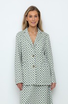Облегченный жакет, по типу бомбера с застежкой на металлическую молнию, выполнен из хлопковой ткани с вышивкой ришелье. Рукав на спущенном плечевом поясе. Вырез горловины, низ изделия и рукавов оформлен мягкой притачной планкой из кашкорсе. Спинка без особенностей.