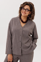 Жакет двубортный умеренного объёма из тёплой мягкой ткани. Застёжка на две пуговицы. По бокам расположены функциональные прорезные карманы с клапаном. Жакет на подкладке. Длина жакета по спинке 70-71 см.