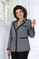 Текстильный классический жакет прямого кроя. Детали: жакет полуприлегающего силуэта, пиджачный воротник, перед с прорезными карманами, двубортная застежка на петли и пуговицы, спинка со средним швом, рукава втачные двухшовные, жакет на подкладке