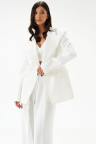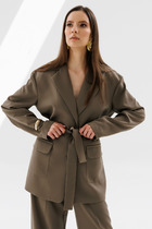 Свободный жакет с разрезами по низу рукавов. Детали: жакет прямого силуэта, пиджачный воротник, перед с прорезными функциональными карманами, нагрудный декоративный карман, однобортная застежка на петли и пуговицы, спинка со средним швом, рукава втачные двухшовные с разрезами по низу, жакет на подкладке.