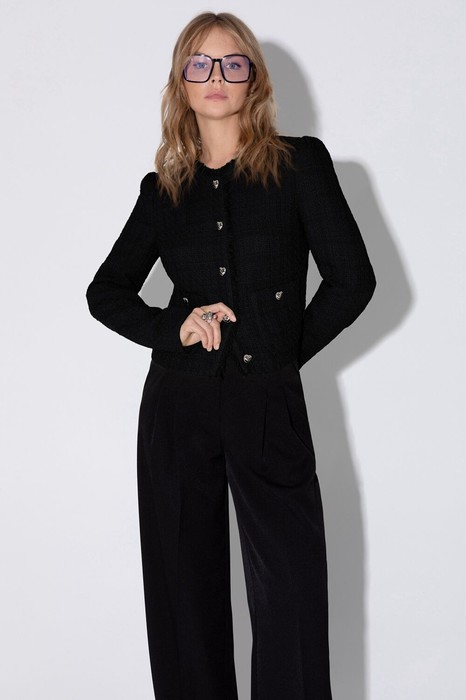 Укороченный жакет из фактурной ткани в стиле «шанель».