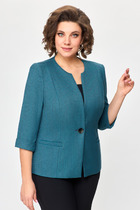 Эффектный жакет из текстильной ткани станет отличным дополнением вашего гардероба.  Жакет женский удлиненный, полуприлегающего силуэта с центральной бортовой застежкой на пуговицу, на подкладке. Перед жакета с боковыми рельефными швами от проймы до низа изделия. Воротник отложной пиджачного типа. Перед с прорезными карманами и клапаном. Рукав длинный, втачной, двух шовный. По низу рукава шлица и потайная застежка-обманка на 3 пуговицы. Спинка с боковыми рельефными швами от линии проймы до линии низа и со средним швом.