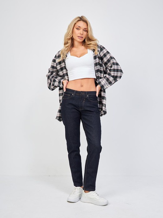 Джинсы женские Boyfriend Fit  ваша идеальная пара для уютного стиля!                                                  Эти джинсы созданы для того, чтобы подарить вам ощущение свободы и уверенности. Это крой, вдохновленный любимыми джинсами из мужского гардероба, но с продуманной женственной посадкой, которая подчеркивает достоинства вашей фигуры. Свободные по бедру, зауженные к низу и укороченной длины  создают силуэт, который  визуально стройнит и удлиняет ноги, делая образ изящным и современным.  Использование ткани  Comfort  Stretch и подкройной пояс из двух частей обеспечивают наилучшее  облегание в талии без дискомфорта. Средняя высота пояса спереди и высокая сзади  обеспечивают дополнительное удобство в процессе носки. Специальная щадящая стирка сохраняет глубокий и насыщенный цвет денима, создавая эффект новизны, но при этом ткань сразу же мягкая и приятная к телу.                      Мы создали их для тех, кто ценит комфорт, не жертвуя стилем.