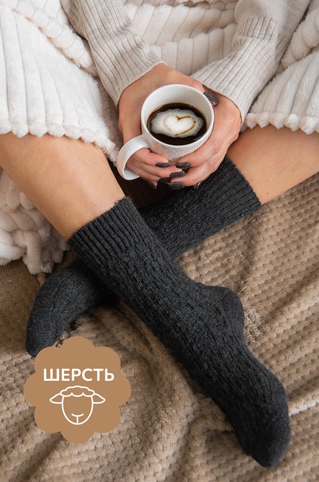 Теплые женские носки выполнены из приятной к телу пряжи с добавлением натуральной шерсти. Однотонные высокие носки темно-серого цвета идеальны для уютных осенних вечеров в компании пледа и какао.