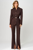 Женский офисный костюм двойка с юбкой станет идеальным выбором для любого случая, гармонично сочетая в себе утонченность и комфорт. Глубокий шоколадный цвет привносит нотку элегантности и изысканности в ваш образ.