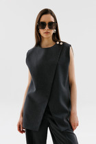 Свобода стиля и свобода кроя, комфорт и непринуждённость – это характеристики жилета, выполненного из плотной по грамматуре ткани.