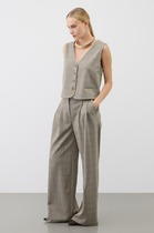 У жилета высокая линия проймы, что позволяет носить его как отдельный элемент, без нижнего слоя одежды.
