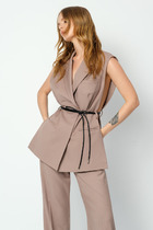 Жилет на молнии "Матрёшка" с воротником-стойкой, коричневый