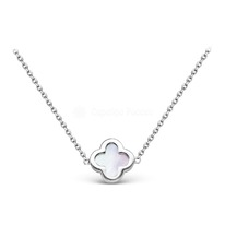 Колье женское на шею в форме клевер из серебра с камнем перламутр родирование