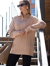 Теплый свитер из хлопка с акрилом и золотистой молнией