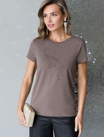 Нарядная футболка с принтом стразами из премиального хлопка с эластаном