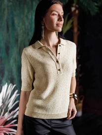 Джемпер поло с застежкой на пуговицы из хлопковой пряжи с пайетками