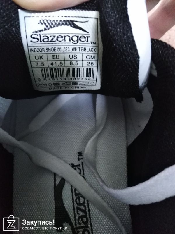 -)муж. кроссовки Slazenger Indoor Trainers Mens, размер 7,5(41,5), на стопу 25,5 см, очень хорошо подошли, выглядят, как на фото сайта, красивые и качественные, рекомендую.