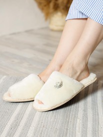 ШЛЁПАНЦЫ МЕХОВЫЕ РОДИНА, ЦВЕТ ВАНИЛЬ.