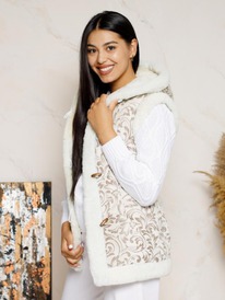 ESENIA Жилет женский из натурального мутона с капюшоном