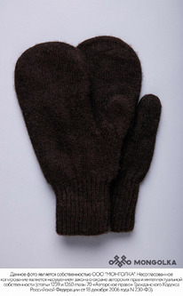 Варежки взрослые из монгольской шерсти шоколадный