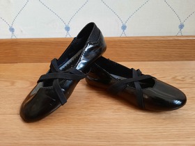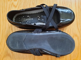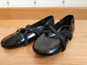 Б/У, балетки известного английского бренда George, Girls Black Ballerina Shoes. Симпатичные балетки из черной лакированной кожи с эластичными ремешками через стопу. Кожаная подкладка, тканевые стельки и рифленая подошва. Нескользящая подошва: гибкая и прочная резиновая подошва для балеток, чтобы хорошо защитить вашего малыша, когда она гуляет, танцует или бегает. Балетки идеально подходят как для элегантной, так и для повседневной одежды. Цвет: Black. Состав: искусственная лакированная кожа 100%, подошва резина 100%, подкладка натуральная кожа 100%. Размер: 9 UK, 27 EU, 26 наш, длина по стельке 16,5 см, длина стопы 16 см. Без коробки. Состояние: б/у, хорошее.