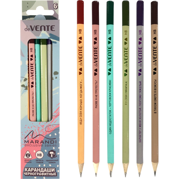 — DeVENTE Набор чернографитных карандашей твёрдо-мягких HB 6шт