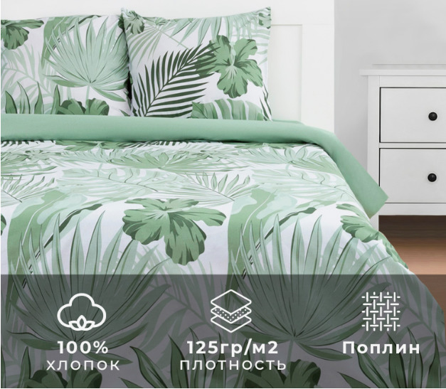 Заказать Комплект постельного белья из поплина Тропики зелёный