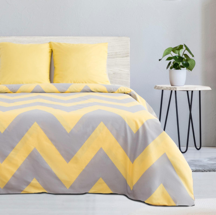 Комплект постельного белья из поплина Зиг-заг жёлтый/серый