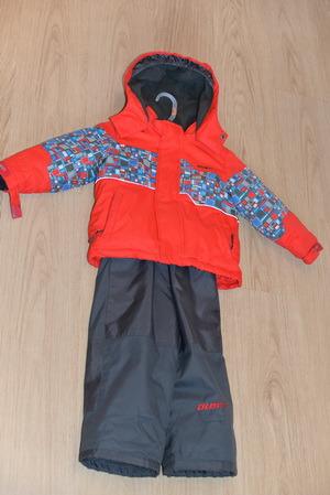 Костюм Густи зимний : куртка красного цвета + коричневый комбинезон.